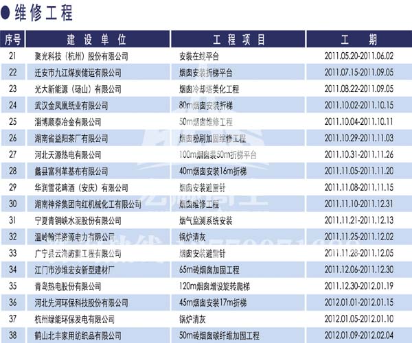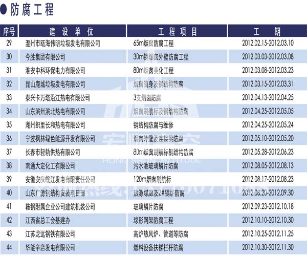 宏順建設(shè)工程有限公司是國(guó)家批準(zhǔn)成立的專業(yè)高空作業(yè)企業(yè):承攬過(國(guó)內(nèi).國(guó)外)煙囪新建、煙囪防腐、吊機(jī)防腐、水塔防腐、管道防腐、龍門吊防腐、儲(chǔ)存罐防腐、煙囪內(nèi)壁防腐等高空作業(yè)工程。具有“不搭腳手架 、 不需要停產(chǎn)”施工特點(diǎn)。